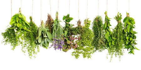 herbs hanging isolated on white background food ingredients