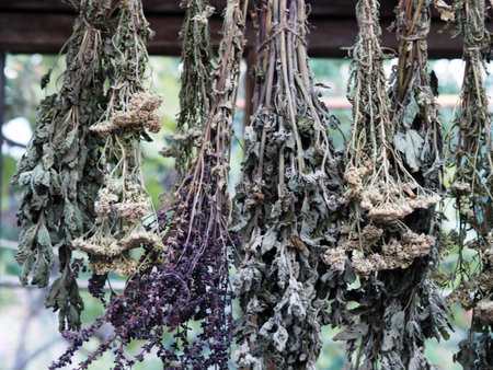 Drying of medicinal herbs for use in alternative medicine.Close up view.Season of harvesting herbs.