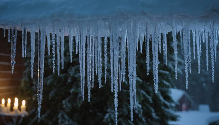 the mesmerizing world of icicles as they dangle gracefully from rooftops and tree branches. the delicate beauty of nature's frozen artistry, capturing the essence of winter's enchantment.