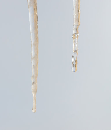 This captivating photo features glimmering icicles with water droplets, set against a dreamy bokeh background. Ideal for winter themes and nature-focused projects.