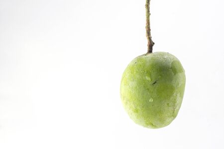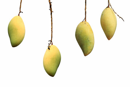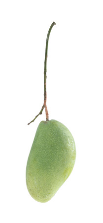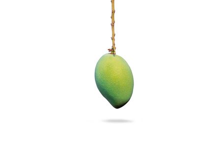 Isolated fresh green Mango tropical fruit with branch on white background. Clipping path