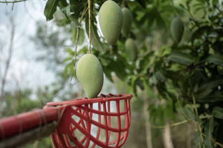 Mangoes are growing on the mango tree. Nam Dok Mai Mango Young Mango