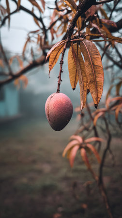 The Mango in winter, chilling air envelops, a few lingering leaves tremble, still atmosphere, clean.