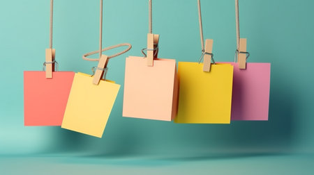 Colorful paper notes hanging on a clothesline on a colorful background.generative ai