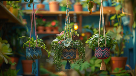 eco-friendly home decor, stylish macrame plant hangers with intricate designs and tassels a modern, eco-conscious display for your indoor plants