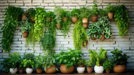 plant growing vertically in vertical garden. vegetable planted in small space pot on wall