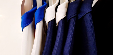 Women's clothing on a hanger in the store - coats, jackets, blouses