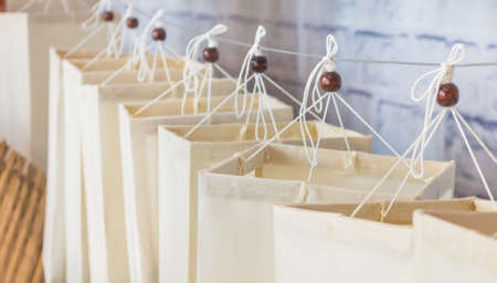 White labels on jute background