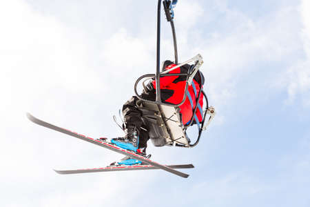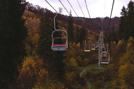 Open lift to the mountains among the autumn forest