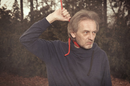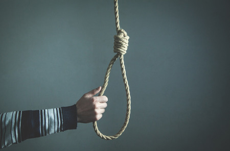 Hands holding rope slipknot in concept suicide