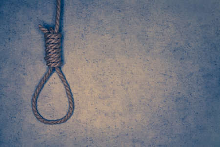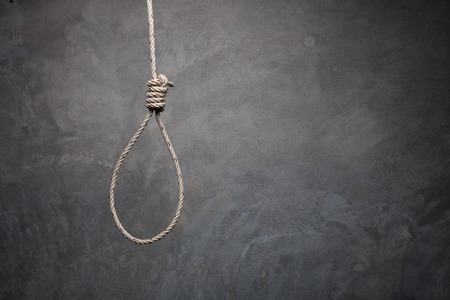 Tied rope noose against gray stone background