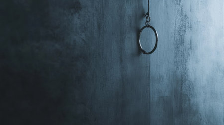 A striking image featuring a metal ring hanging against a dark, textured wall. This composition evokes mood and simplicity, perfect for artistic projects.