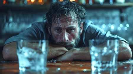 Depressed man gets drunk in a bar, alcohol, drunkenness