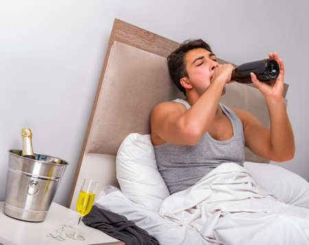 Man in the bed after party - Hangover concept
