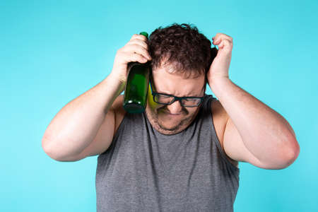 drunk man drinking beer alcohol emotion isolated background