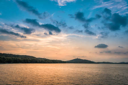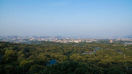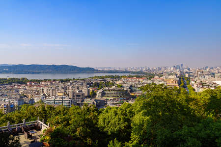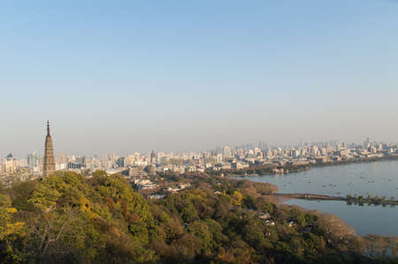 Zhejiang, China - 01 November 2017: View of Hangzhou city with West Lake in background.