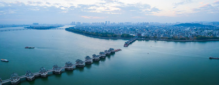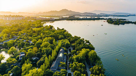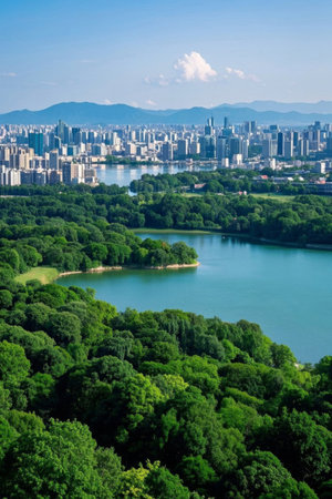 aerial view of West Lake Xihu District, Hangzhou, Zhejiang Province. Generative AI