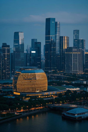 Night view of urban buildings in Qianjiang New Town, Hangzhou