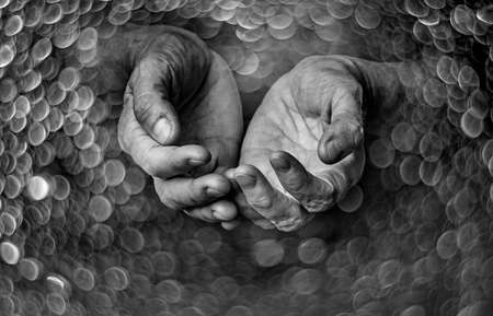 old elderly hands on a black bokeh background