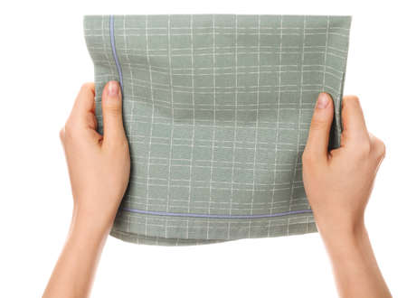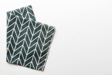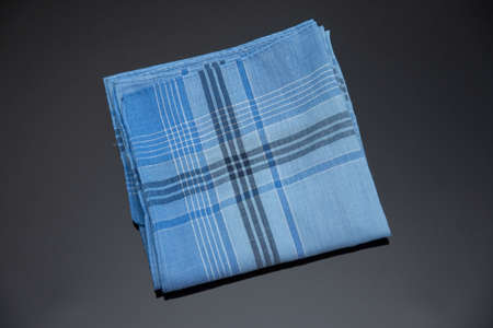 top view with blue kitchen napkin isolated on table background. Folded cloth for mockup with copy space, Flat lay. minimal style.