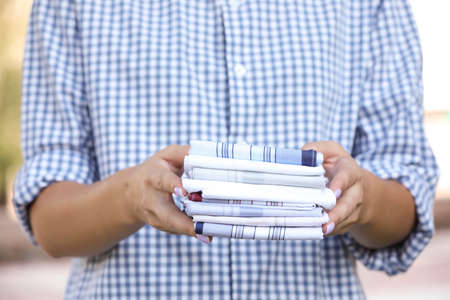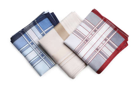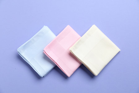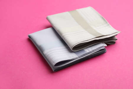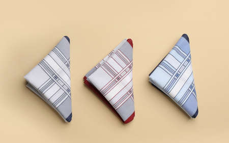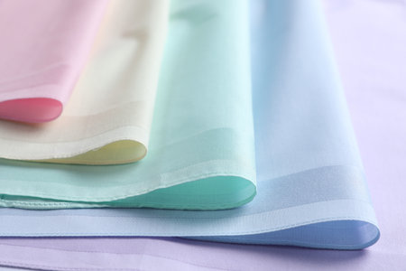 Handkerchiefs on a cloth background. Using reusable textile accessories instead of single-use paper tissues. Creating less waste and caring for our environment, place for text