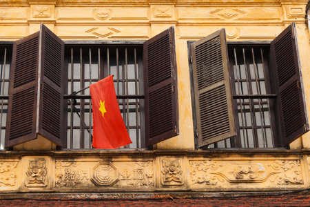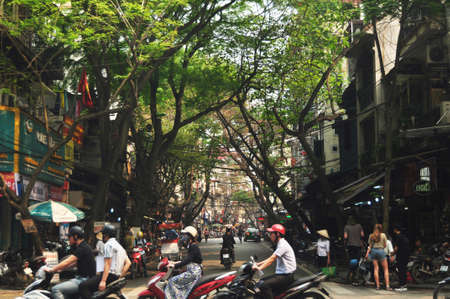 Hanoi, Vietnam - Aug 8, 2017: The buildings at Dong Kinh Nghia Thuc quarter in old town next to Hoan Kiem lake
