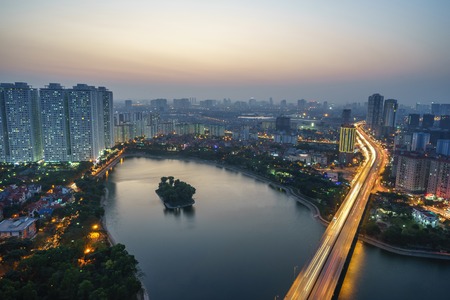 Hanoi, Vietnam - May 14, 2015: Aerial view of Hanoi skyline cityscape at Nguyen Chi Thanh street at sunset time