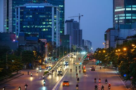 Hanoi cityscape with modern buildings on Nguyen Chi Thanh street at twilight