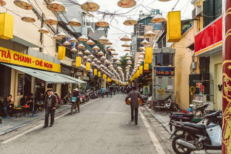 Hanoi, Vietnam, December 30, 2019, Street of the old quarter against day light