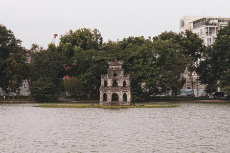 The Turtle Tower and Hoan Kiem lake in Hanoi, Vietnam
