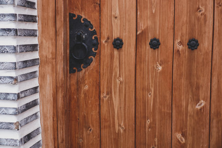 Traditional korean architecture, stone wall with wooden door in Gyeongbokgung Palace, Seoul, South Korea.