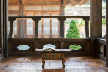 Yongin City, South Korea - June 29, 2017: Korean Tradition and Symbol - Traditional Korean wooden products, desk