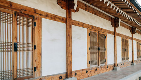 A beautiful display of traditional Korean wooden architecture with ornate details, showcasing cultural heritage.