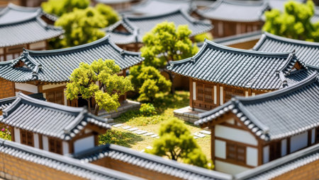 The stunning view of the Hanok Village in Suwon, showcasing traditional architecture and peaceful surroundings.