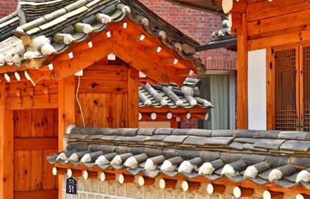 Detail of building in Bukchon Hanok Village, a Korean traditional village in Seoul, South Korea