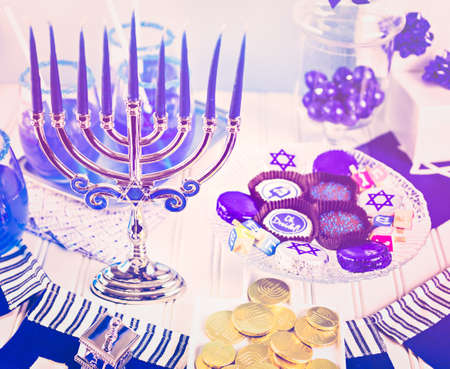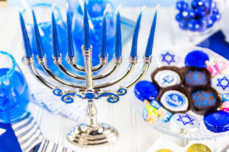 Jewish holiday Hanukkah with menorah (traditional candelabra)