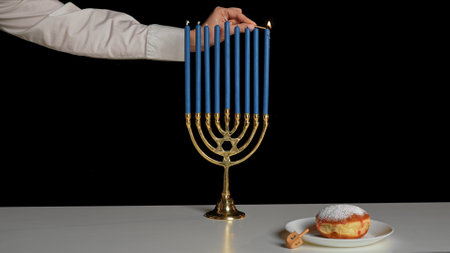 Celebrating Hanukkah With a Menorah and Sufganiyah in a Vintage Setting