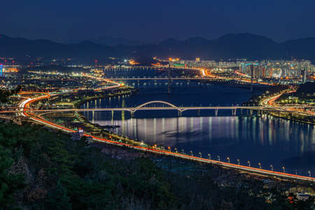 landscape view from Dongjak bridge At Hun river .South Korea.