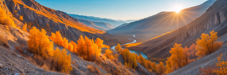 Mountain rivers and golden forest scenery