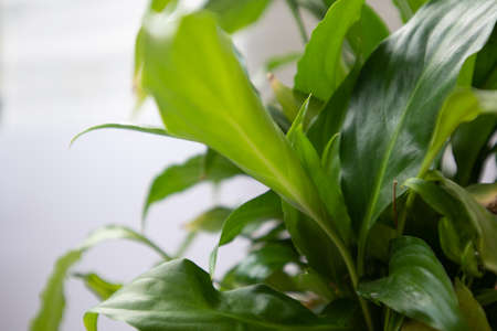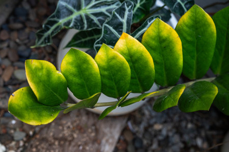 houseplant - Zamioculcas. green branches of Zamioculcus closeup. copy space