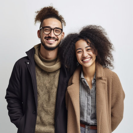 Generative AI : Portrait of a multiracial couple having fun Caucasian and black people
