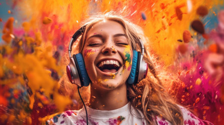 Young Womans Joyful Laughter and Carefree Spirit Under a Colorful Shower of Confetti