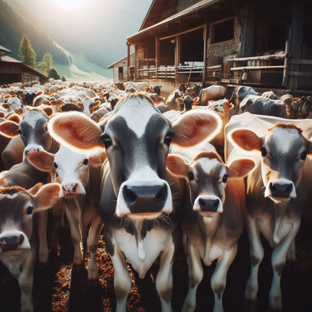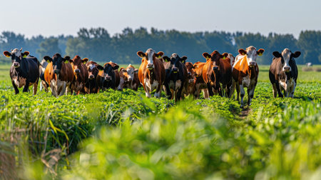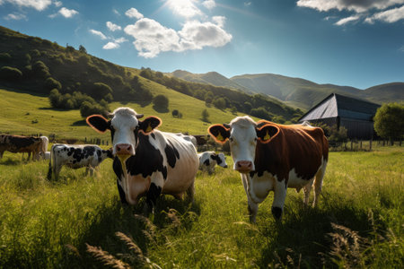 Captivating Herd Dynamics in Modern Dairy Farming Rural Farmstock in a Verdant Meadow Landscape