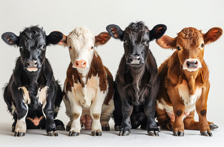 cute group of cow and calf on isolated white background.