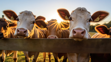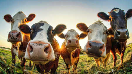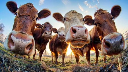 A Group of Friendly Cows Enjoying the Sunset