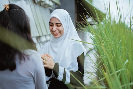 woman greeting each others that invited for the celebration of Hari Raya. They are all excited to enjoy the festivity for the day.