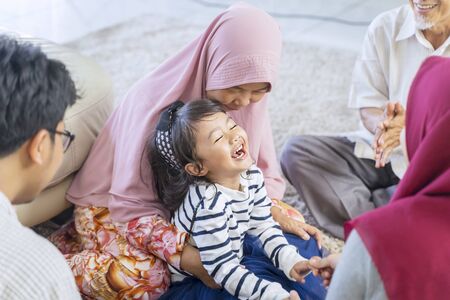 Muadzam Shah, Malaysia - June 21st, 2020 : Happy Malay family during Hari Raya. Malaysian family lifestyle at home. Happiness concept.