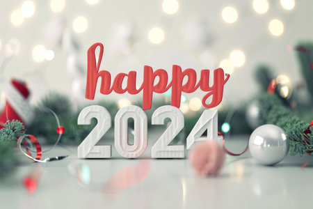 Happy new year 2024 in hand writing on card.