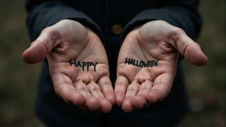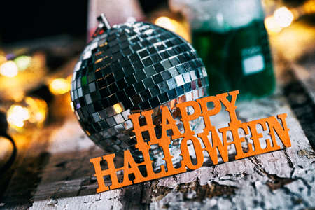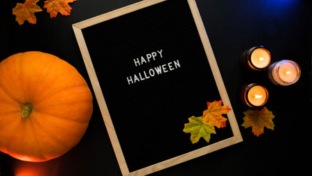 Happy Halloween. Beautiful greeting card. Place for your inscription. Top view, close-up. Congratulations to loved ones, relatives, friends, colleagues