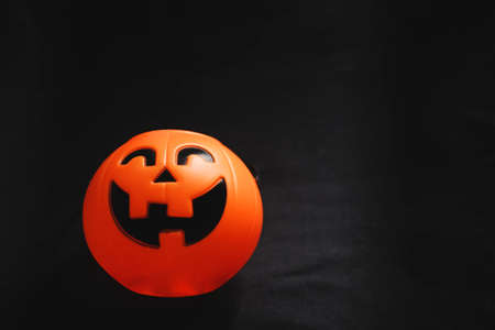Halloween pumpkin on dark background. Jack o lantern. Space for text